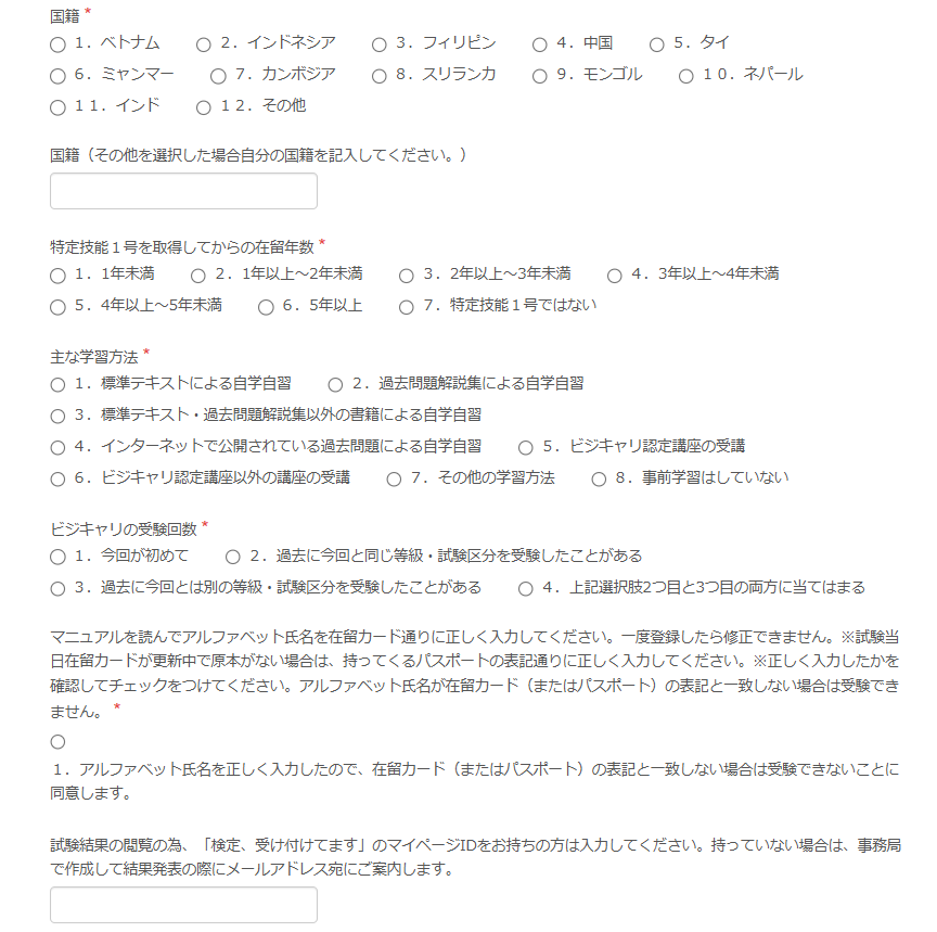 ミドルネームがある場合、氏名ローマ字の項目の、「MEI(名)」にミドルネームとファーストネームを両方入力してください。ミドルネームとファーストネームの間には全角スペースを入力してください。氏名フリガナの項目も同じように、「メイ」にミドルネームとファーストネームのフリガナを両方入力してください。ミドルネームとファーストネームの間には全角スペースを入力してください。 必ず在留カードと同じ表記になるように注意してください。