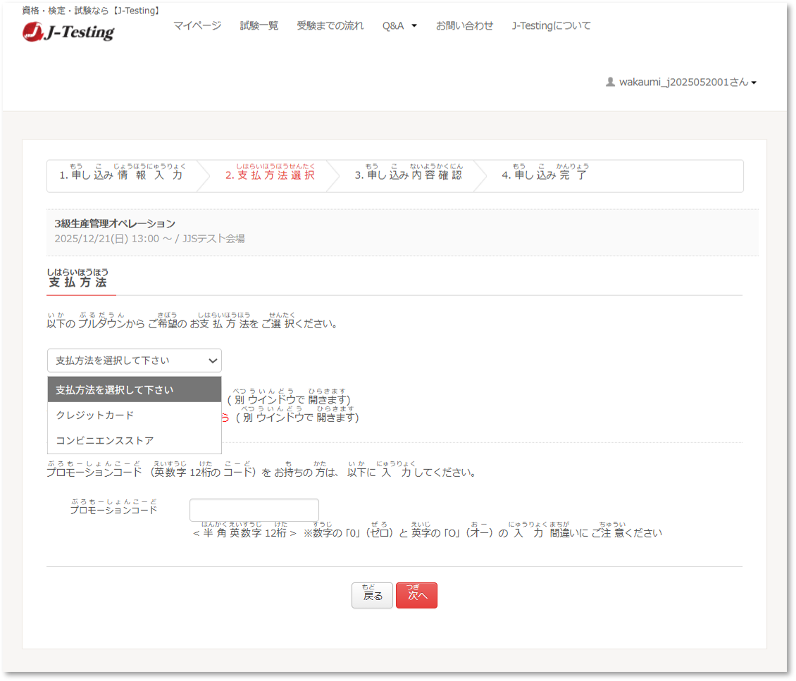 ビジネス・キャリア検定試験専用の会員登録ページから、J-Testingの会員登録をしてください。(クリックで専用ページに遷移) ビジネス・キャリア検定試験専用の会員登録ページのリンクはこちら 会員登録が全て終了したら次のSTEPに進んでください。 |