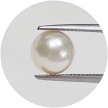 解説:アコヤ養殖真珠はアコヤガイを母貝とする真珠です。母貝の体内に球状の核と真珠層を作り出す外套膜の切片を共に挿入し、海の中で過ごさせ、年月を経て核に真珠層を成長させることで作られた宝石です。