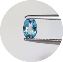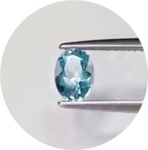 解説:淡い青色をしたトパーズの宝石名はブルー・トパーズです。この色合いは特別にスイスブルーとも呼ばれています。無色から淡い褐色のトパーズを人為的に放射線照射することにより鮮やかな淡青色に改変された宝石です。トパーズには水酸基の多いOHタイプとフッ素の多いFタイプがあり、このブルー・トパーズはFタイプです。
