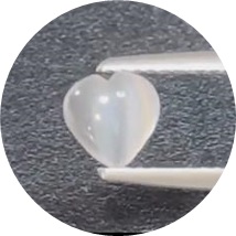 解説:ムーンストーンはシラーと呼ばれる浮かび上がるような乳白色の光が特徴です。これは光の散乱という現象によるものです。このシラー効果は、ファセットカットよりもカボッションカットされることでより明瞭に現れます。他の宝石には見られないような独特な輝きがあります。