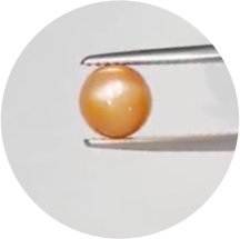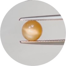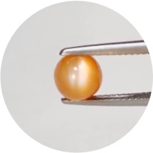 解説:オレンジ色の地色をしているので、宝石名はオレンジ・ムーンストーンです。ムーンストーンはシラーと呼ばれる浮かび上がるような乳白色の光が特徴です。これは光の散乱という現象によるものです。このシラー効果は、ファセットカットよりもカボッションカットされることでより明瞭に現れます。