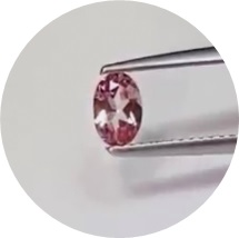 解説:トルマリンは三方晶系の宝石です。三方晶系の宝石の特徴は複屈折性と多色性が見られることです。特にトルマリンは多色性が明瞭な2色性です。このピンク・トルマリンは見る方向により、ピンクとブラウニッシュピンクの異なる色を確認することができます。